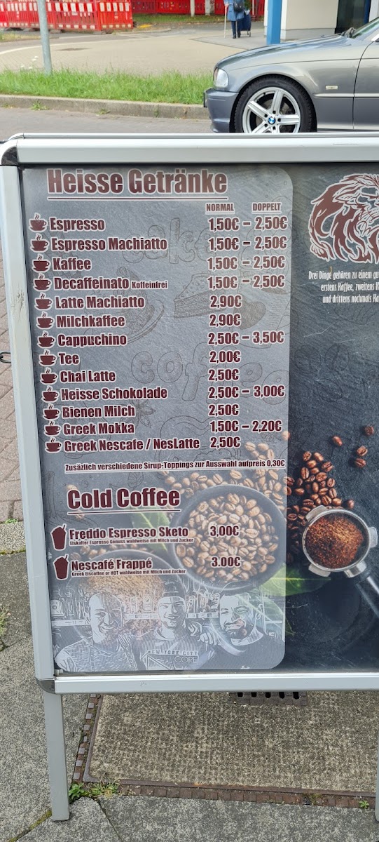 The menu features a selection of beverages and light food items suitable for various occasions such as breakfast, coffee breaks, or quick snacks. Visitors can expect offerings that include coffee made from an Italian-style machine, as well as a range of light bites and snacks commonly found in kiosk and café settings.